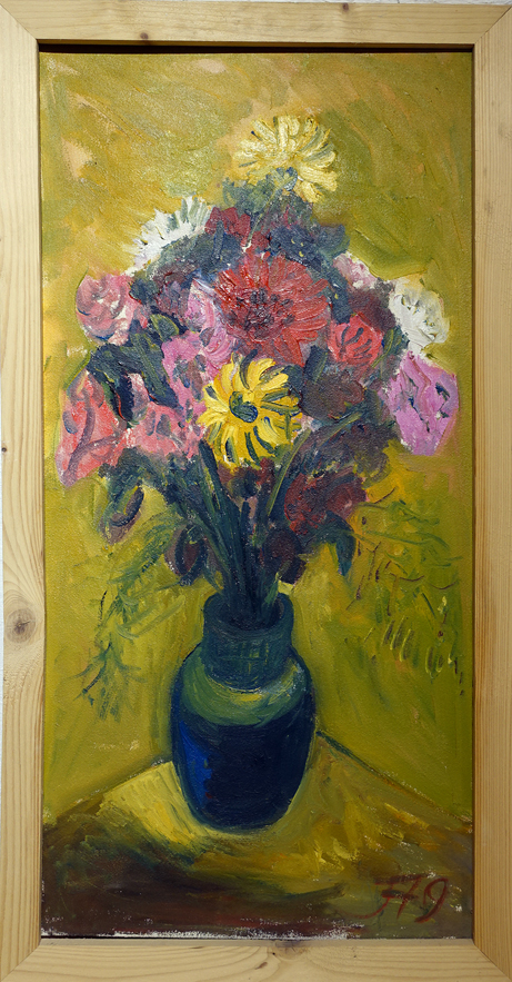 "Blumenstrauss", Öl auf Leinwand, 1979, 70 x 34 cm , € 1400.--