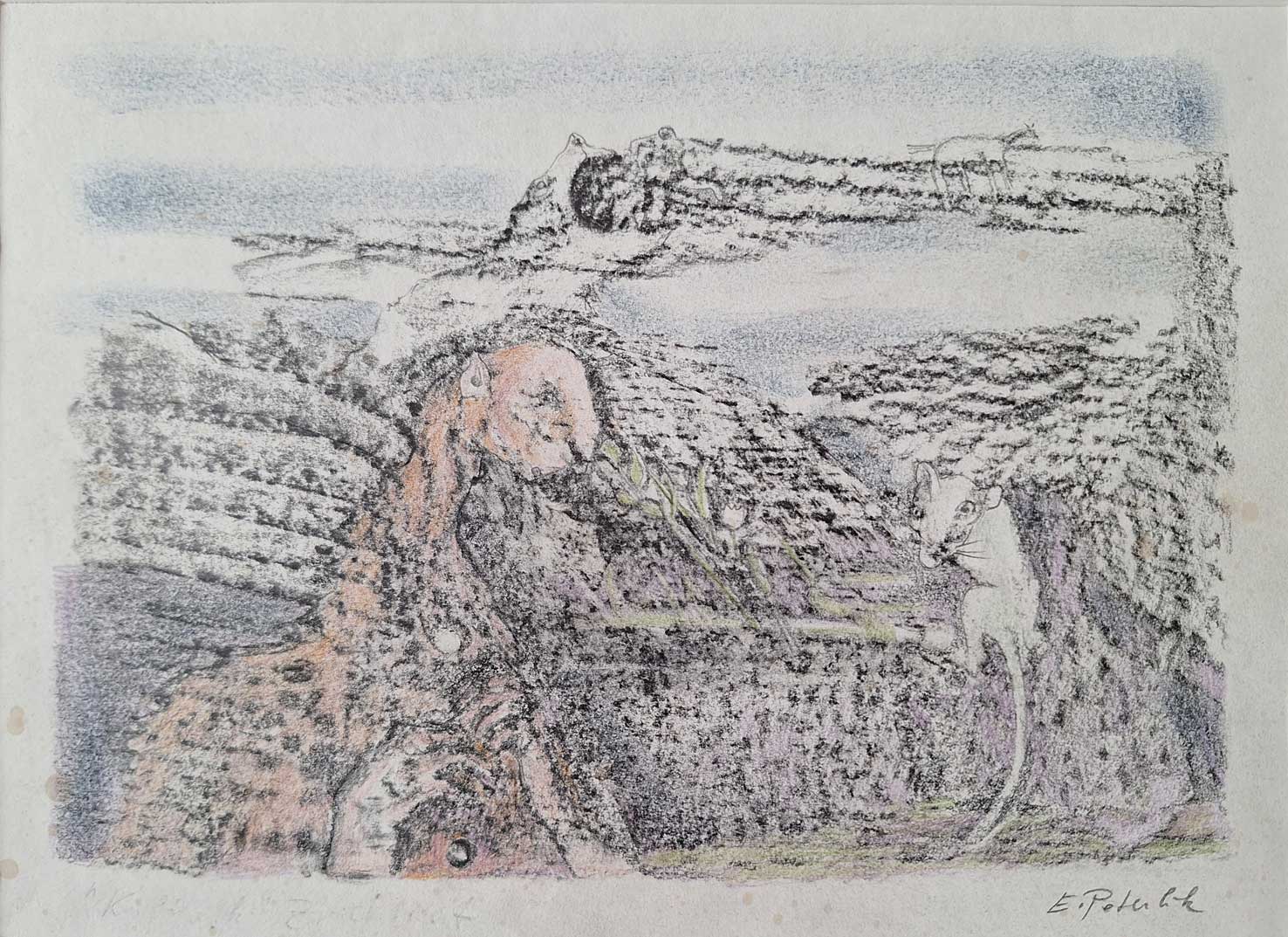 "Flötenspieler", Graphit, Pastell, Farbstift, 2026, 42.3 x 52.3 cm, Bild: 19.5 x 27.5 cm , € 850.--