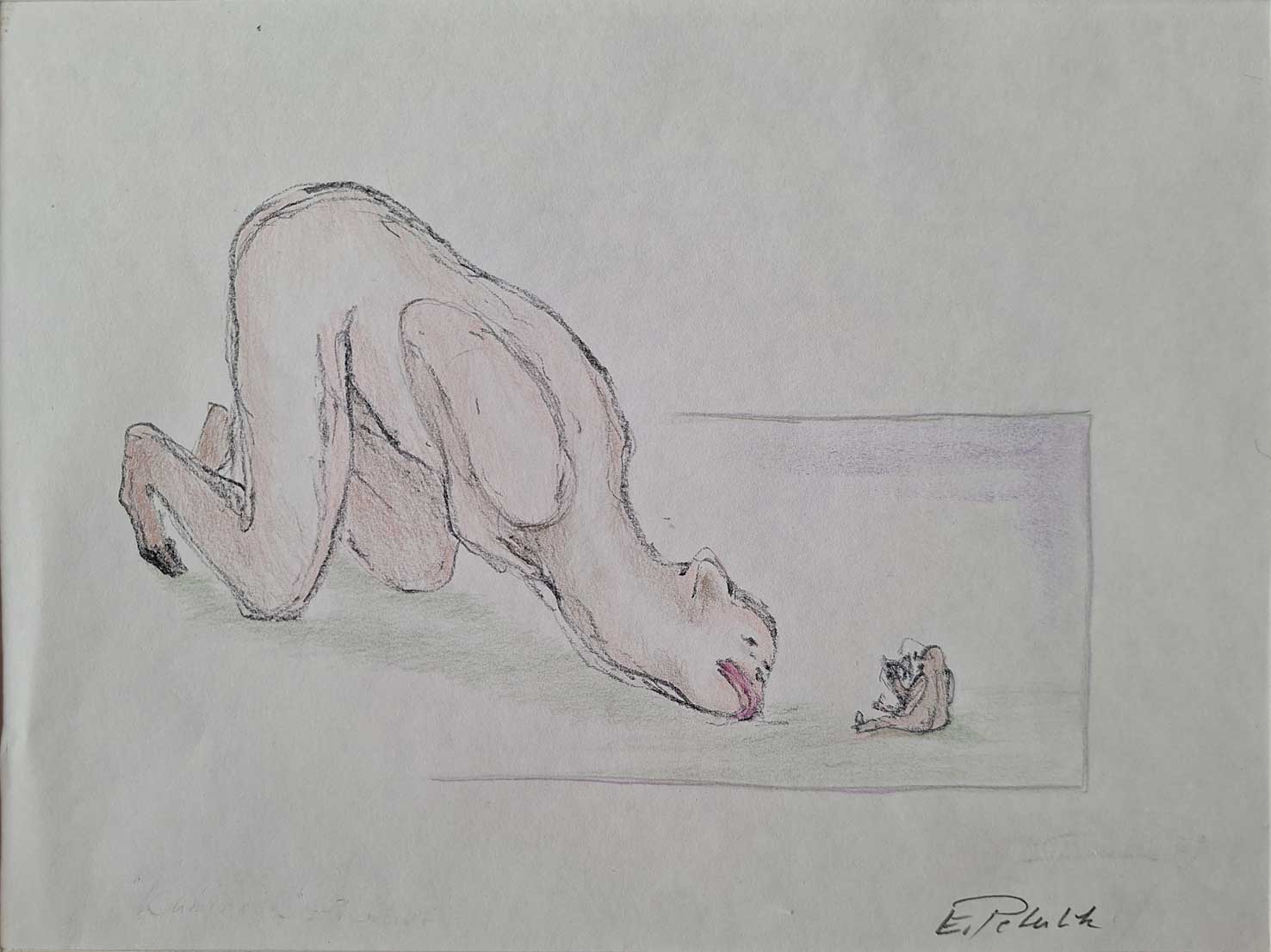 "Anbetung II", Farbstift, nicht datiert, 42.5 x 52.5 cm, Bild: 24.5 x 33 cm , € 1200.--