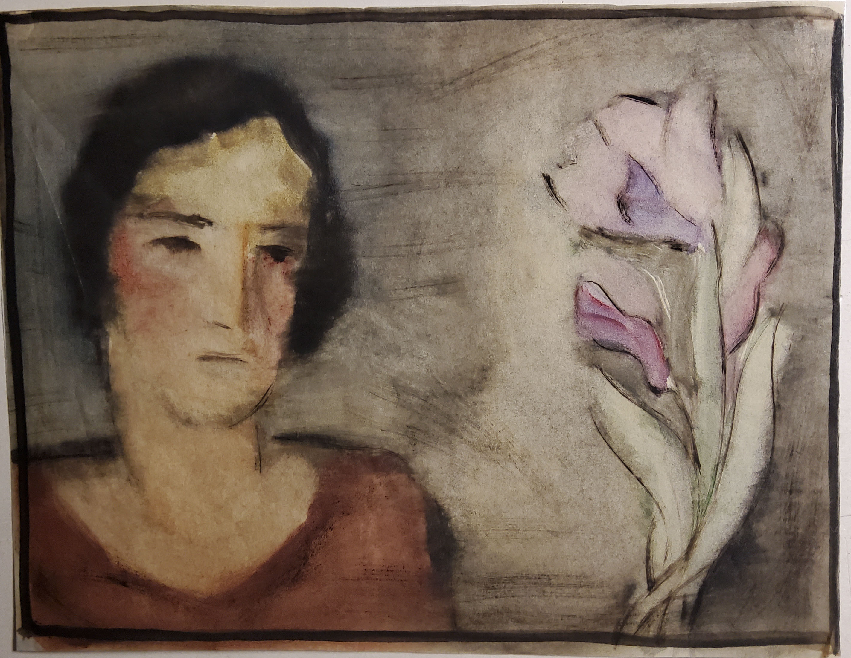"Frau mit Lilie", Pastell, nicht datiert, 53 x 46 cm, Bild: 24.5 x 31 cm , € 750.--
