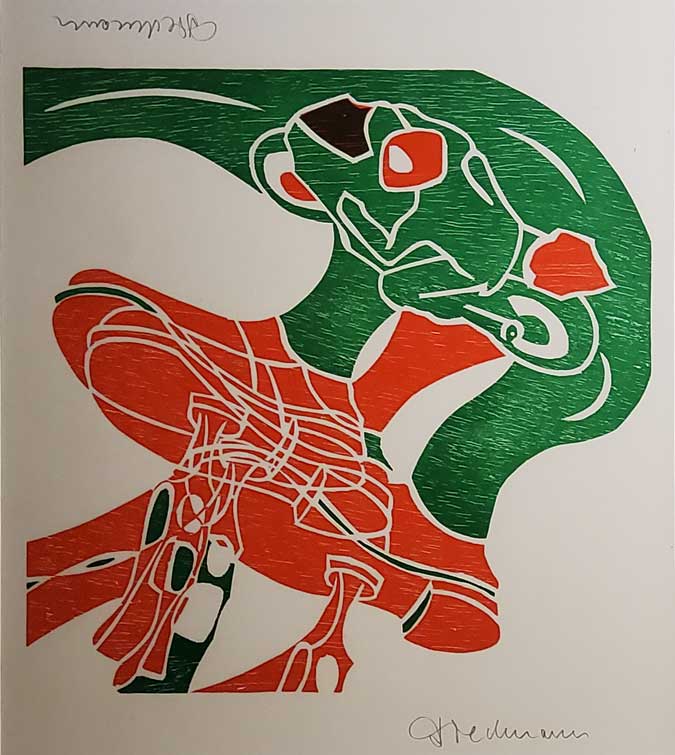 "Ohne Titel", Holzschnitt, nicht datiert, 62.5 x 53 cm, Bild: 33 x 39.2 cm , € 300.--