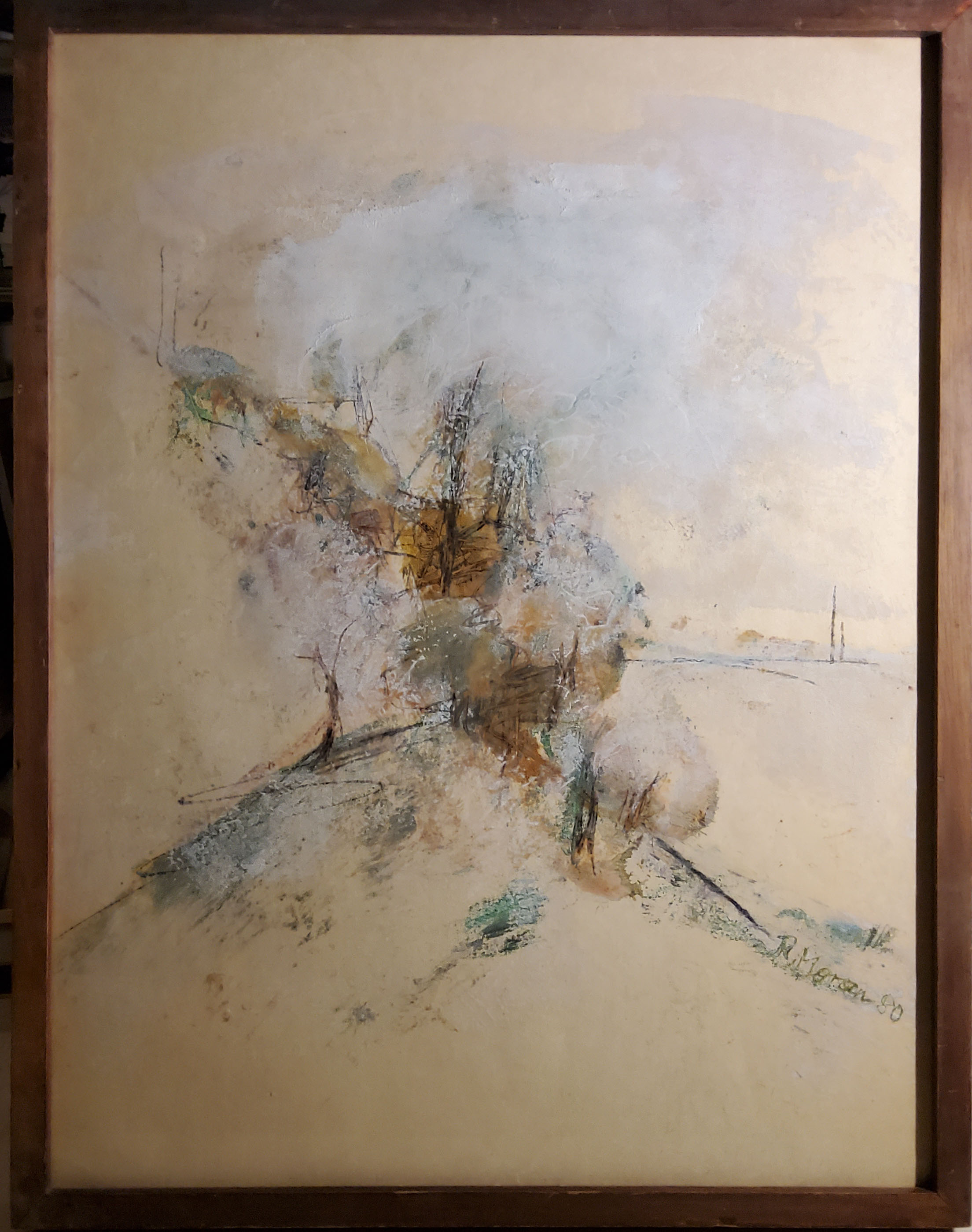 "Landschaft", Mischtechnik, 1980, 67.5 x 53.5 cm, Bild: 65 x 50 cm , € 380.--