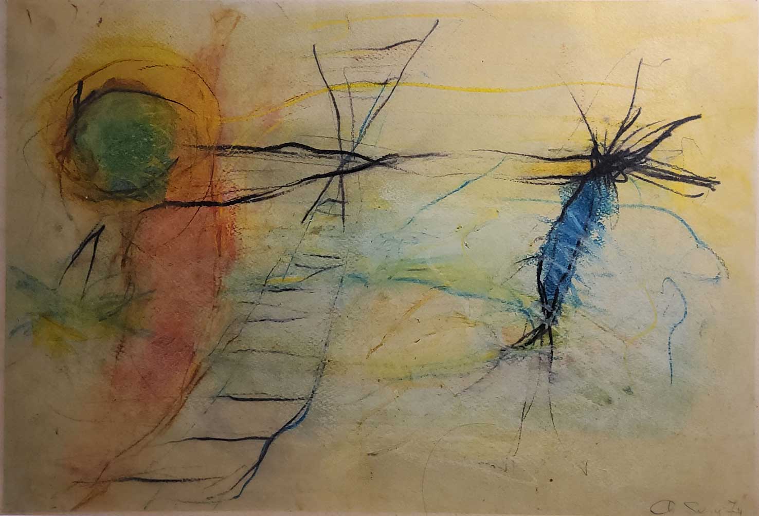 "Ohne Titel", Kreide, 1974, 43.3 x 58.3 cm, Bild: 33.5 x 49 cm , € 300.--