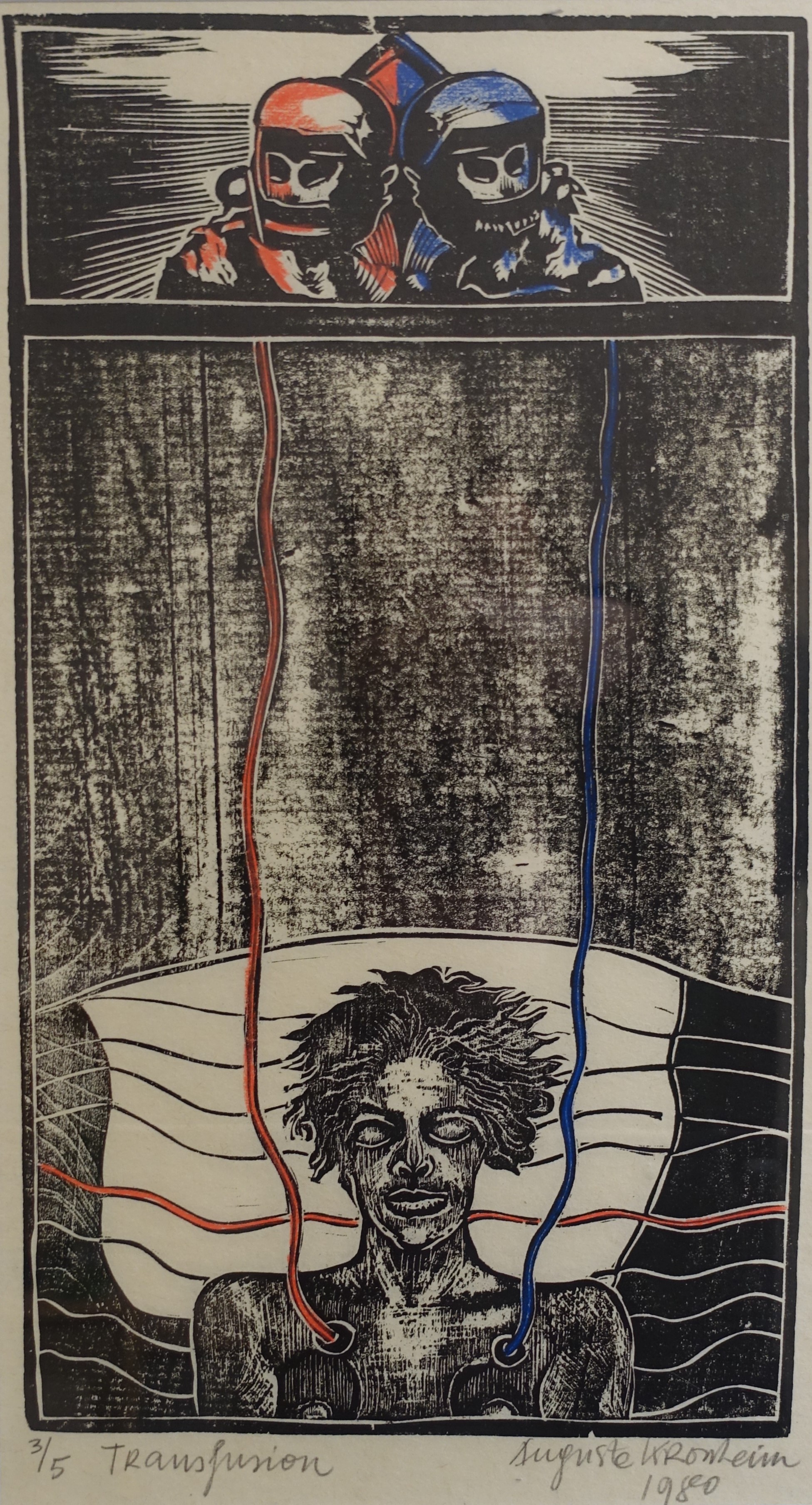 "Transfusion", Holzschnitt, Aquarell, 1980, 36 x 19.8 cm , € 650.--