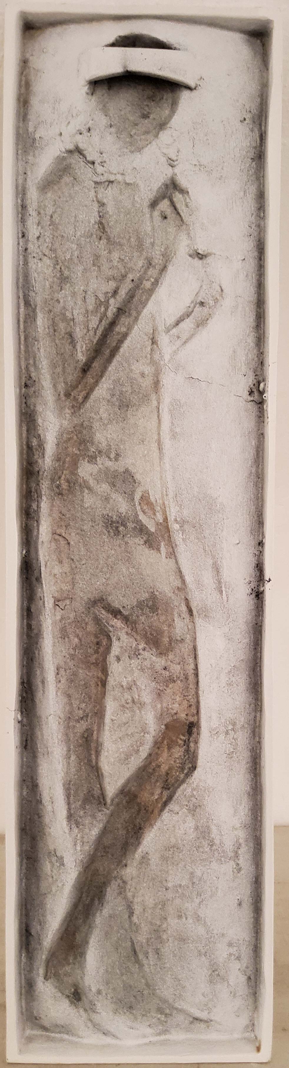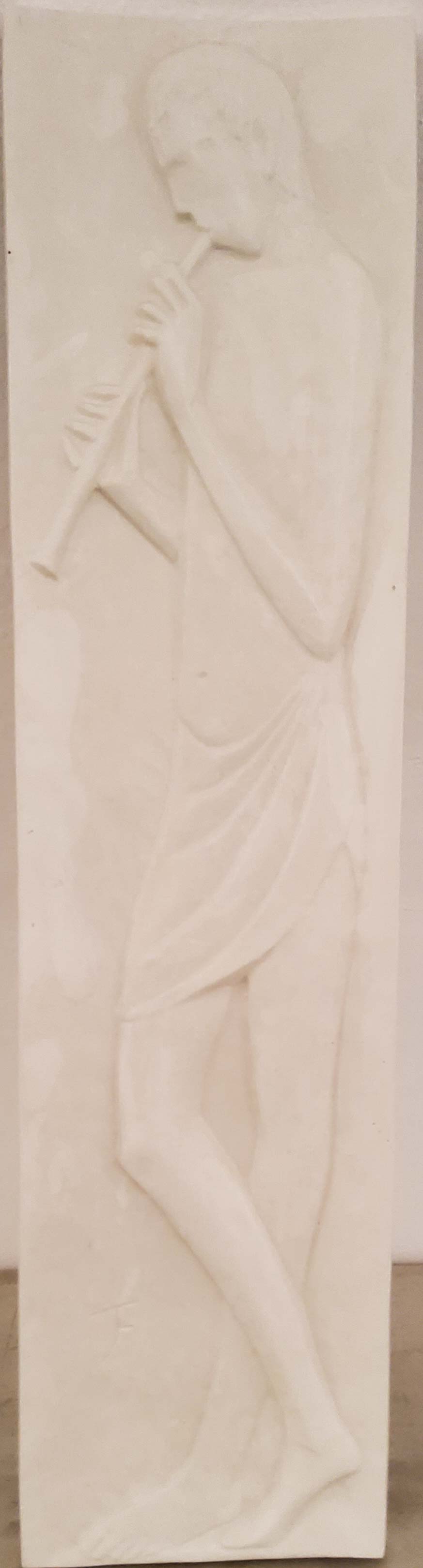 "Flötenspieler", Bronze weiss patiniert, nicht datiert, 71.5 x 18.5 x 3 cm , € 2020.--