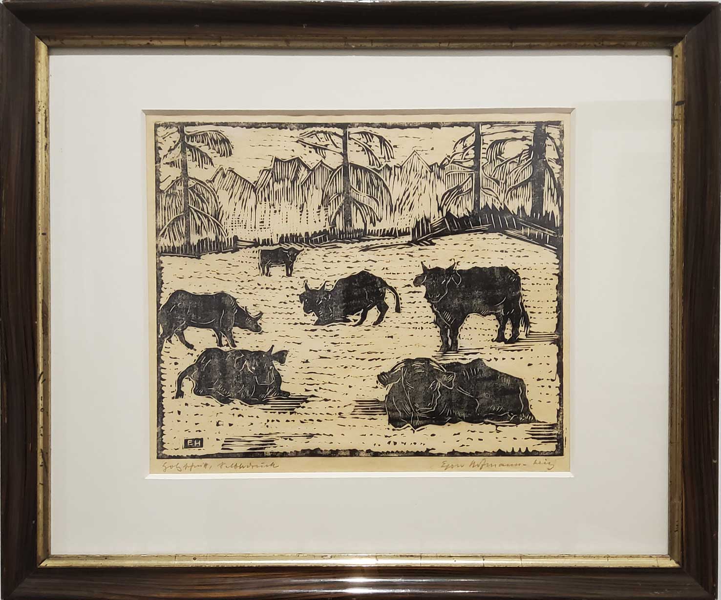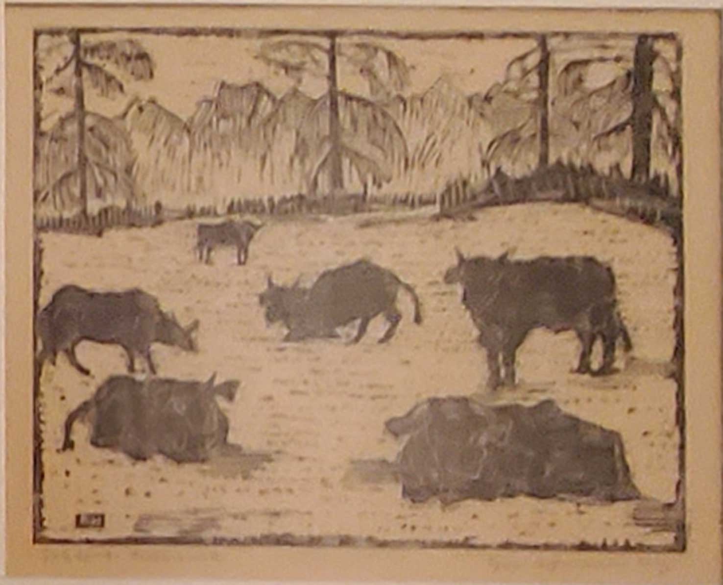 "Herde", Holzschnitt, nicht datiert, 34 x 40 cm, Bild: 21 x 24 cm , € 280.--