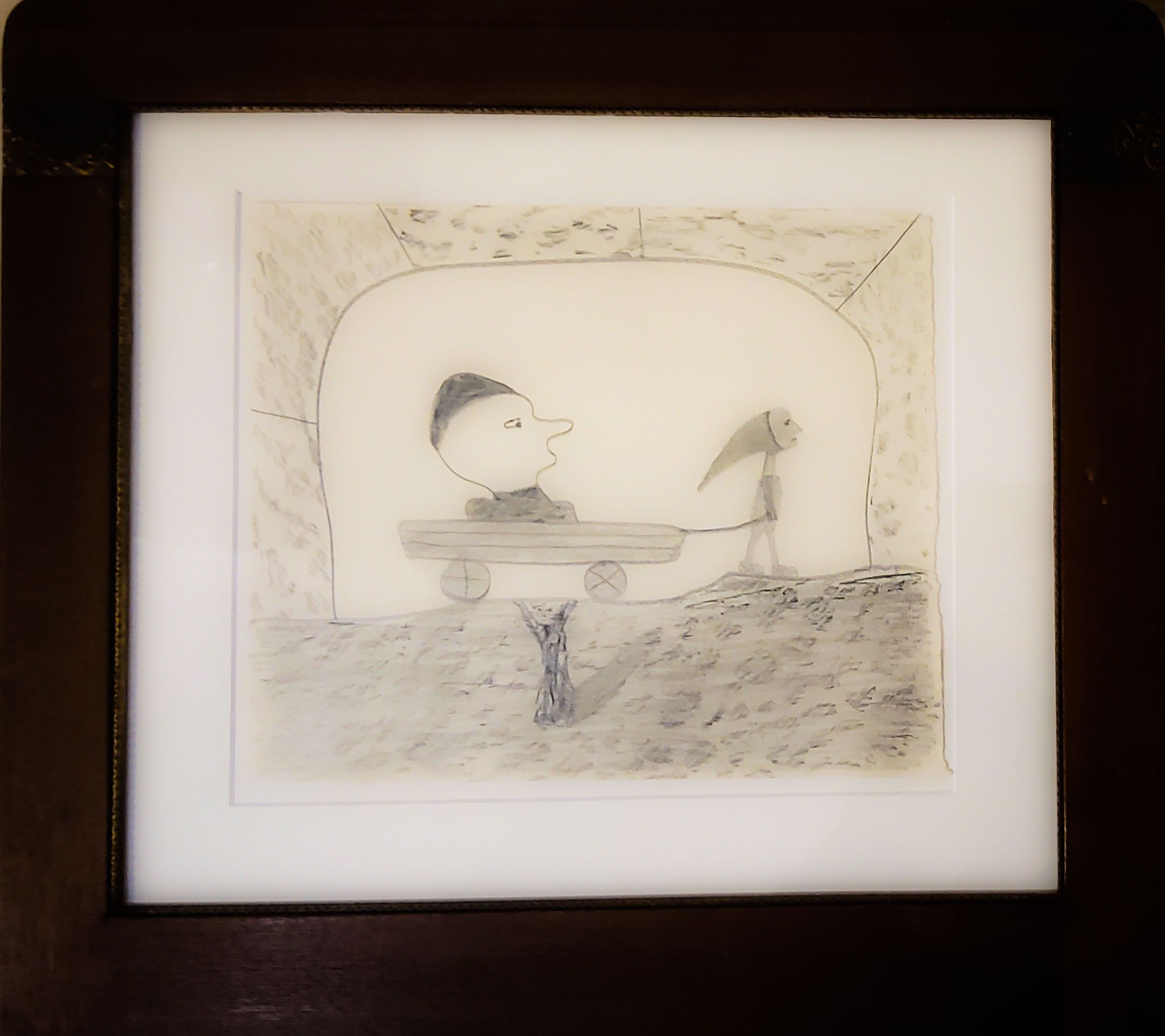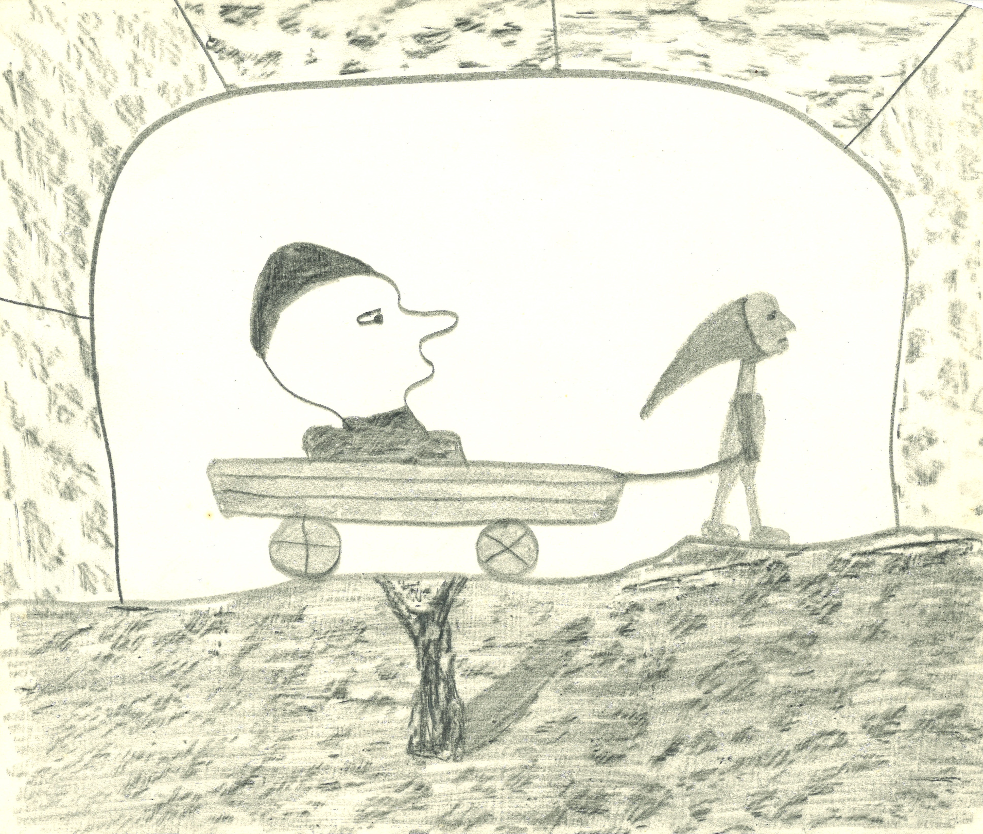 "Figur in Wagen gezogen", Frottage, nicht datiert, 38 x 42 cm, Bild: 21 x 25.3 cm , € 280.--