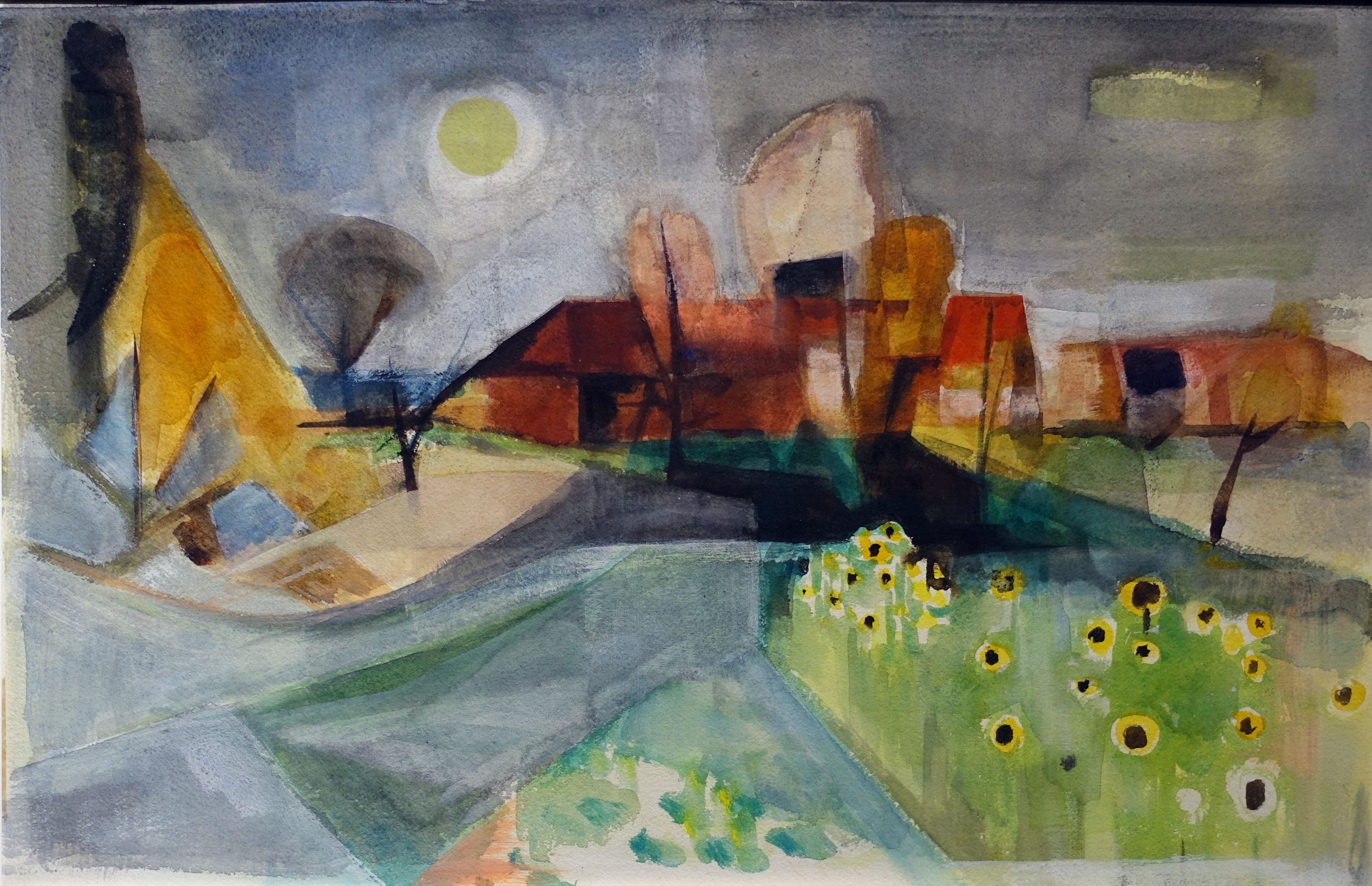 "Landschaft mit Blumen", Aquarell, nicht datiert, 35.7 x 49.5 cm , € 600.--