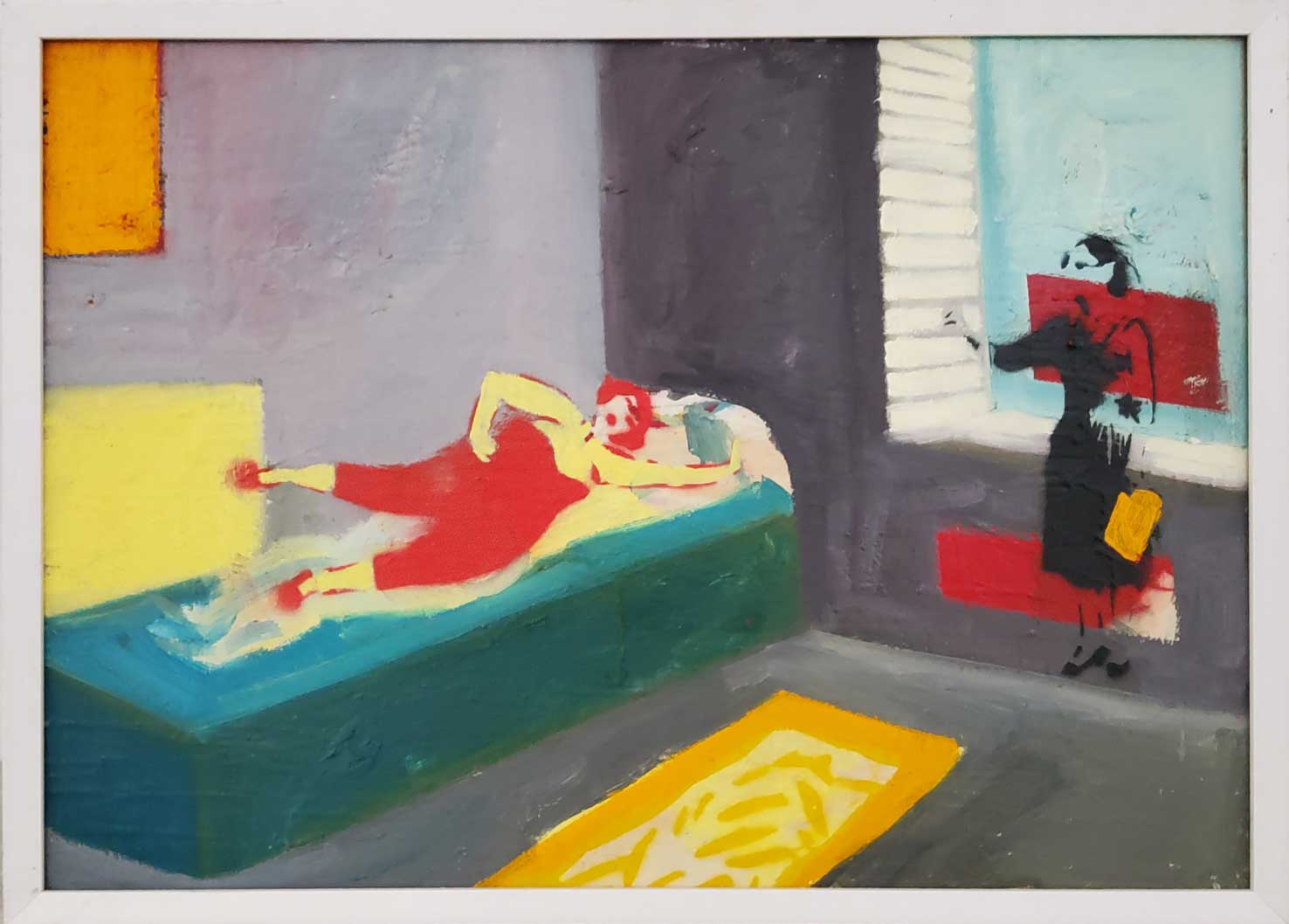 "The Hopper Series - knock", Öl auf Leinwand, 2025, 54 x 74 cm, Bild: 50 x 70 cm , € 1800.--