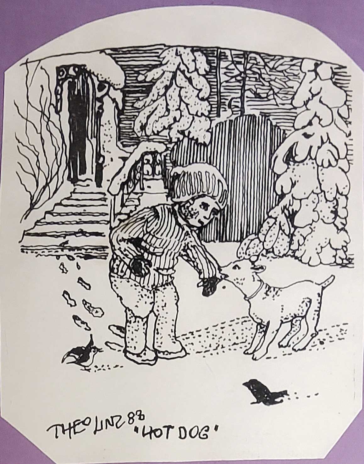 "Hot Dog", Feder, 1988, 28.5 x 22.5 cm, Bild: 15.2 x 12 cm , € 150.--