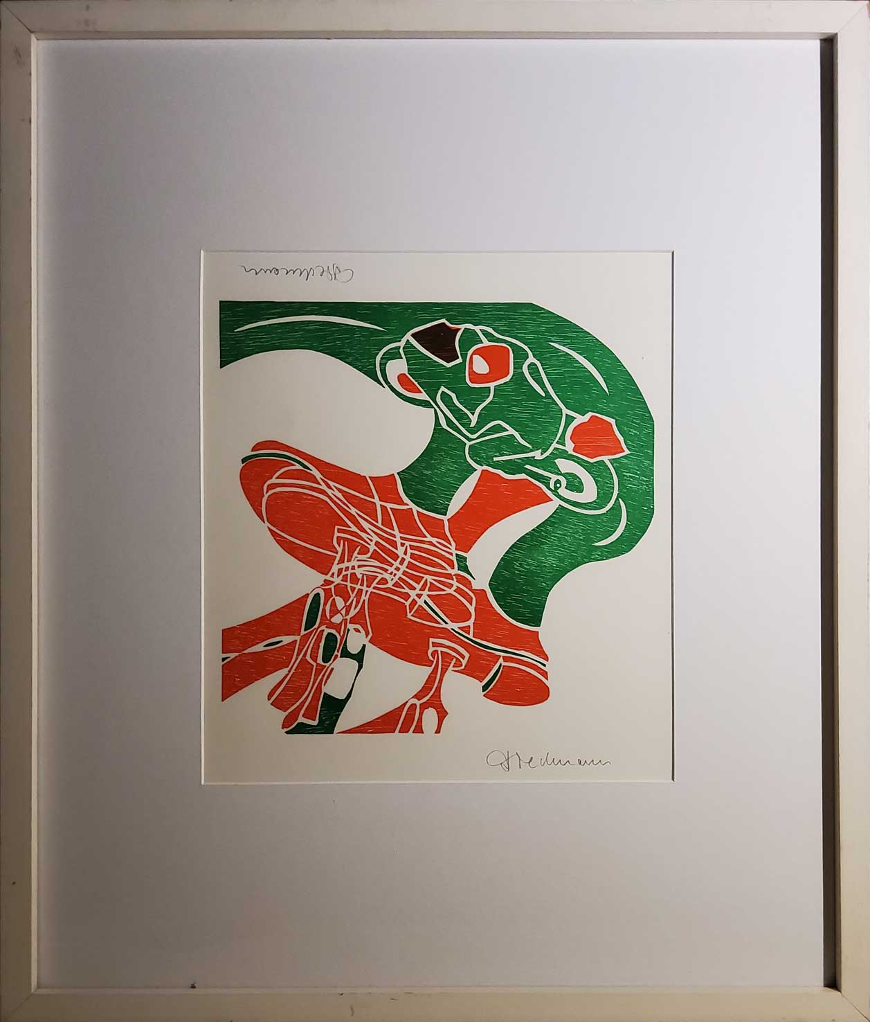 "Ohne Titel", Holzschnitt, nicht datiert, 62.5 x 53 cm, Bild: 33 x 39.2 cm , € 300.--