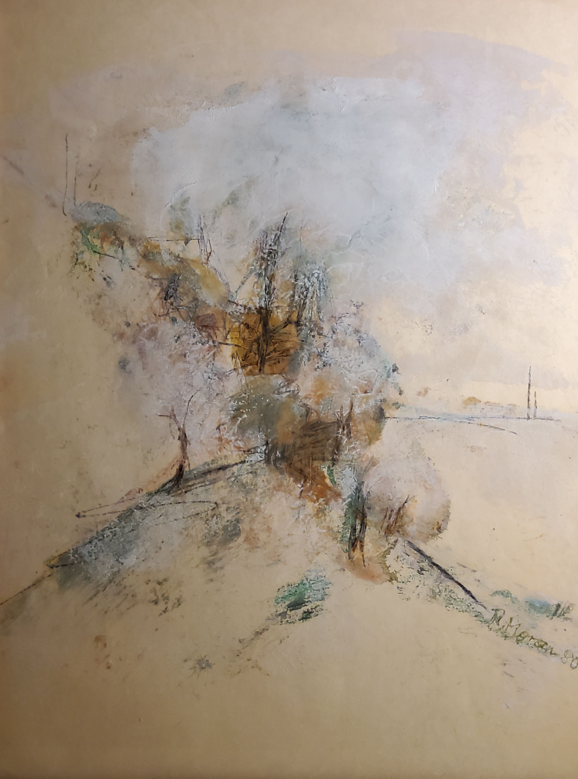 "Landschaft", Mischtechnik, 1980, 67.5 x 53.5 cm, Bild: 65 x 50 cm , € 380.--