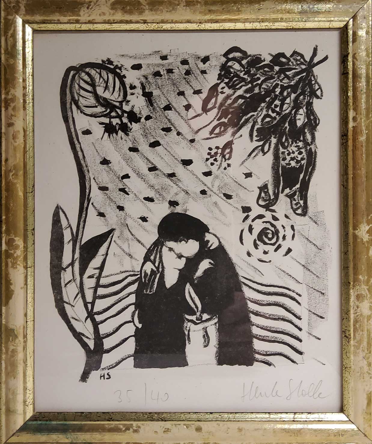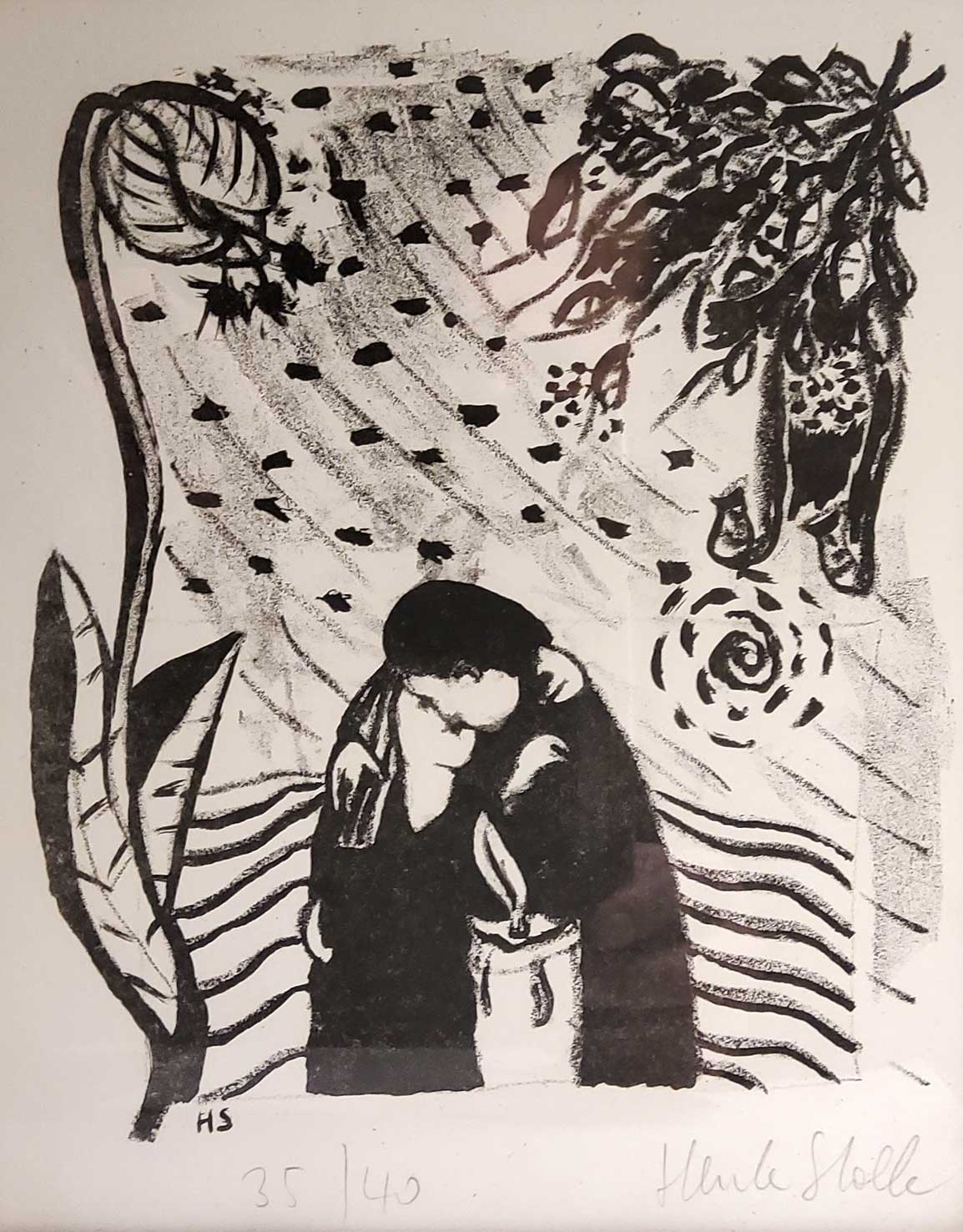 "Kuss im Park", Lithographie, 35/40, nicht datiert, 29 x 25 cm , € 120.--