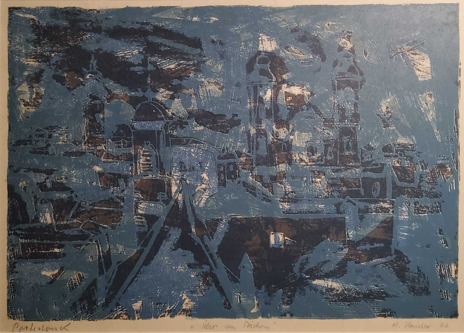 "Über den Dächern", Lithographie, 1966, 39.5 x 52 cm, Bild: 25 x 34 cm , € 360.--